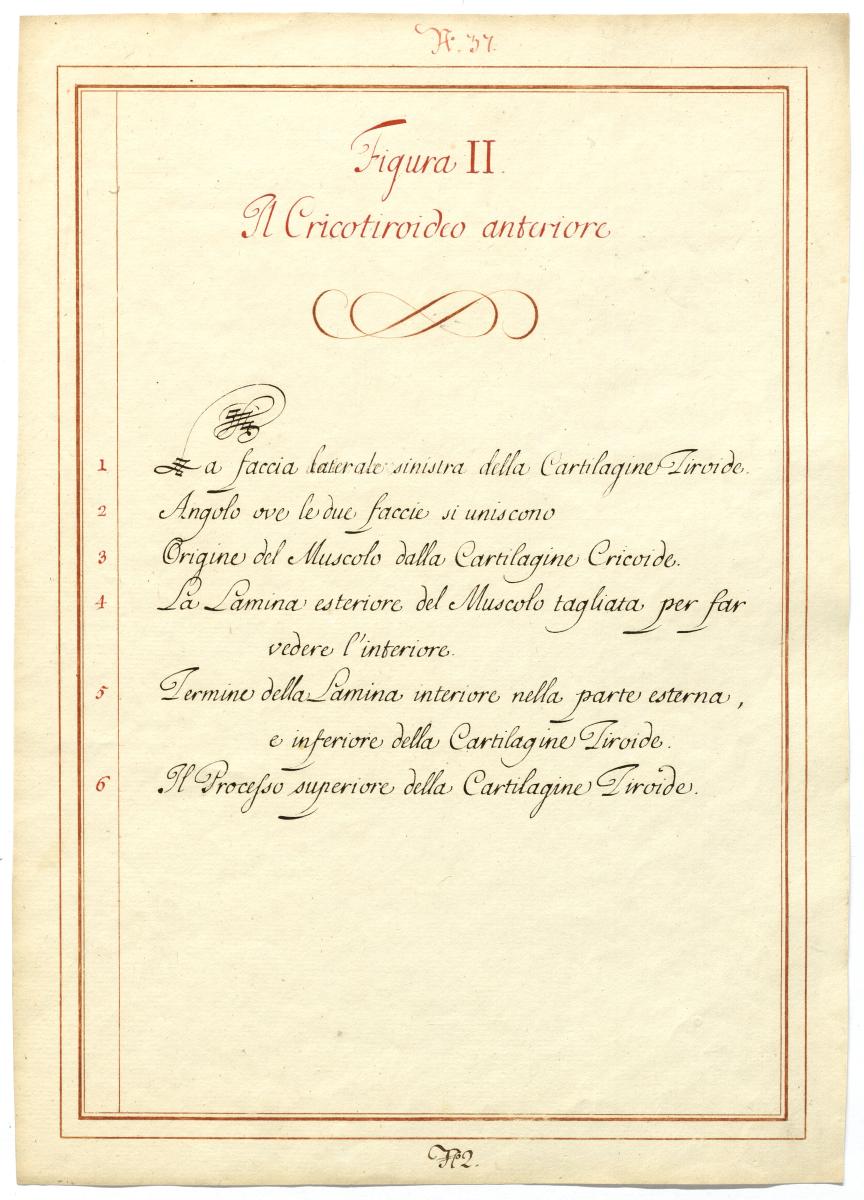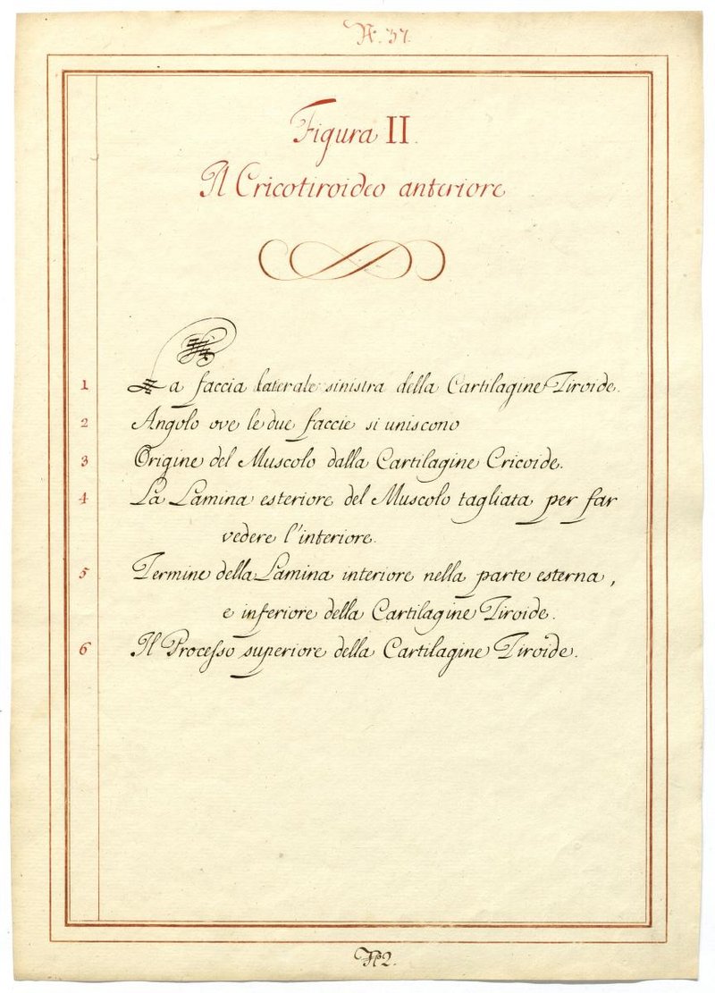 Der Text ist die ergänzende Beschreibung in italienischer Sprache zum anatomischen Wachsmodell der Kehlkopfmuskulatur.