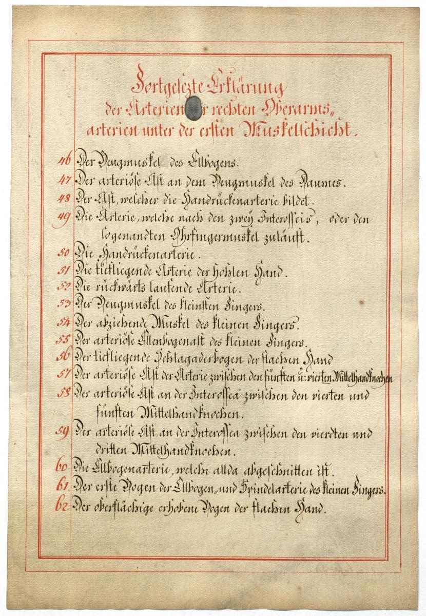 Der Text ist die ergänzende Beschreibung in deutscher Sprache zum anatomischen Wachsmodell der Fußsohlenarterie.