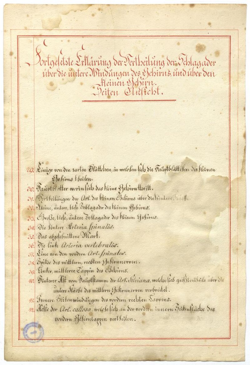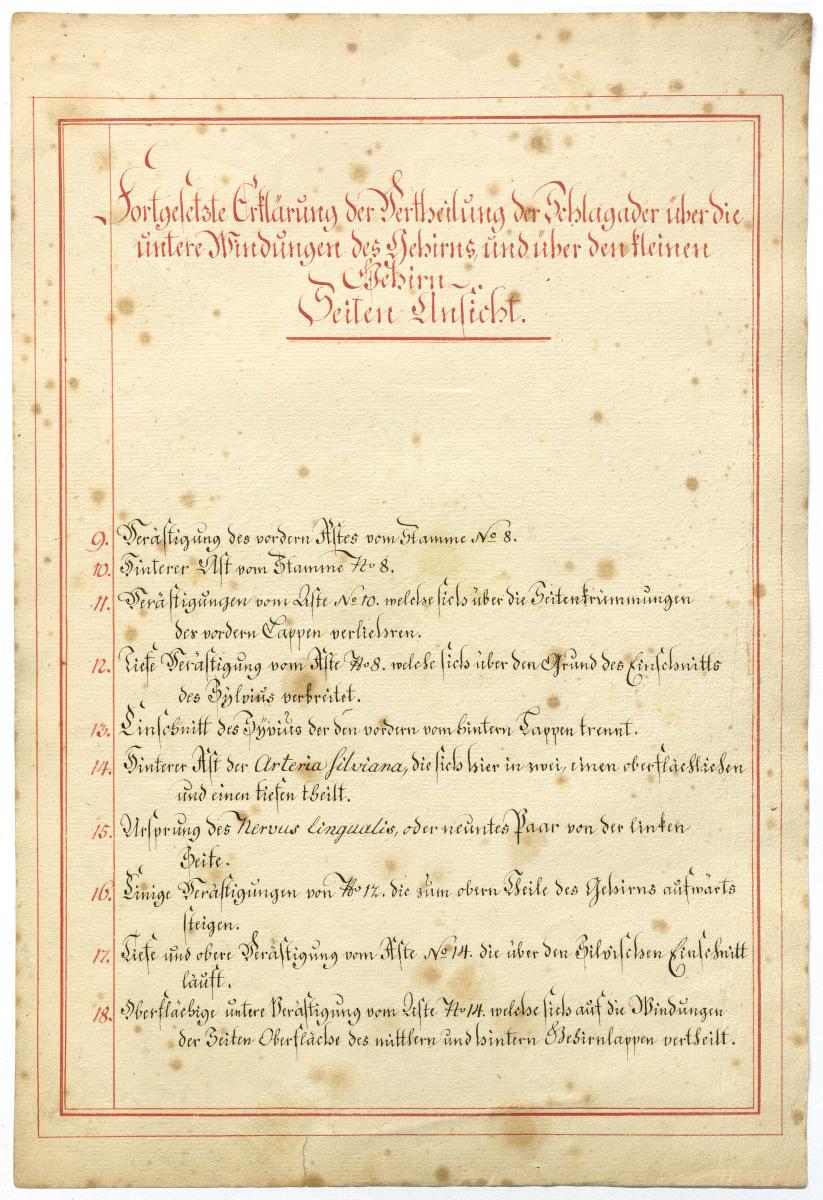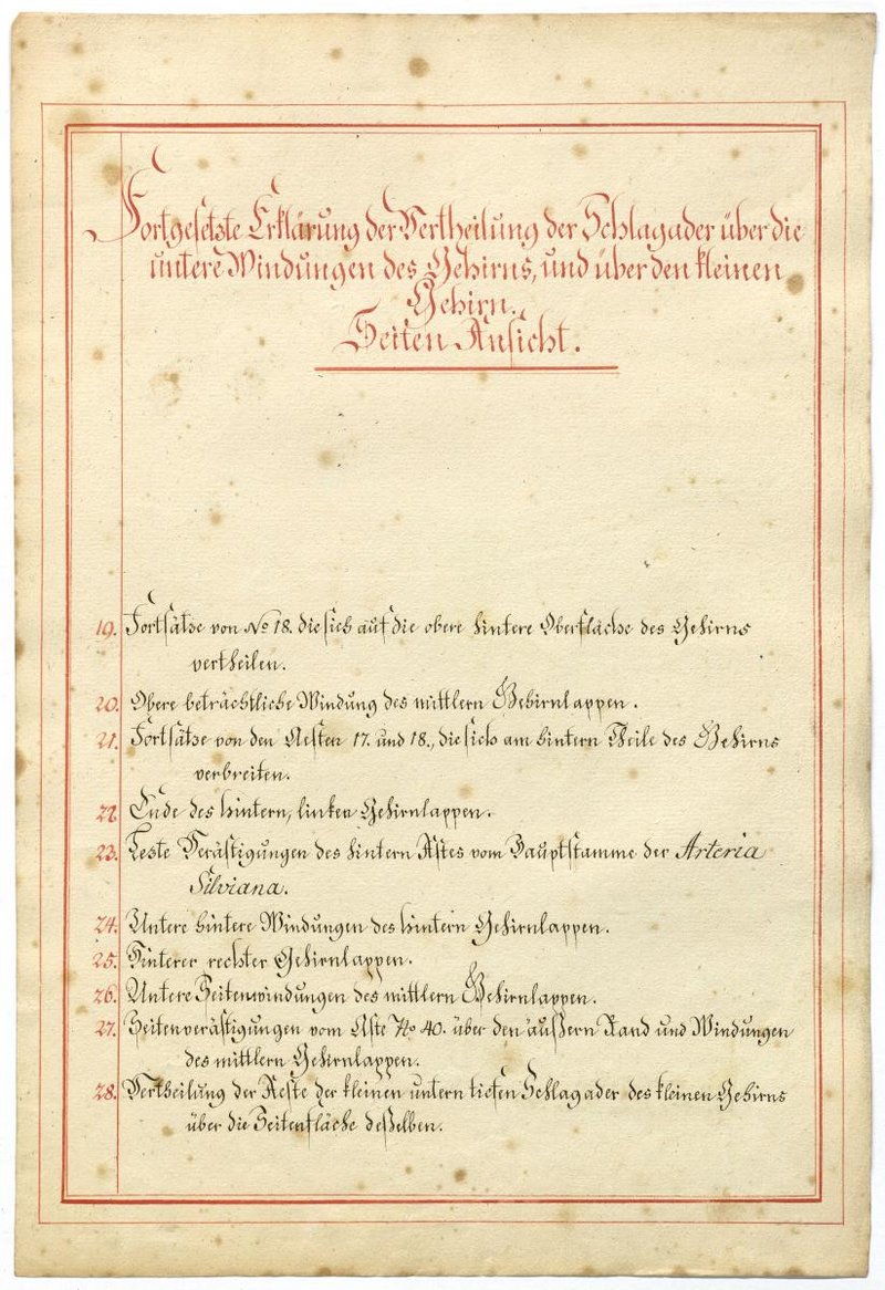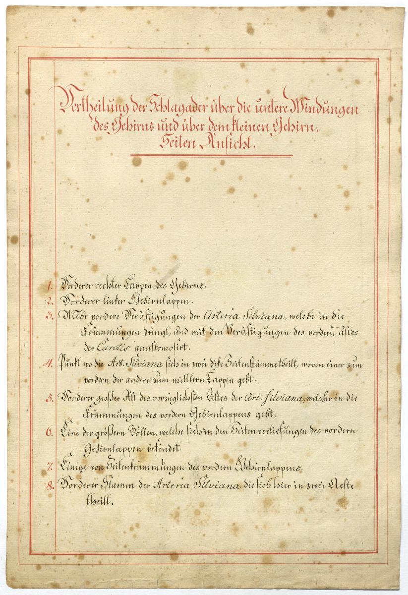 Der Text ist die ergänzende Beschreibung in deutscher Sprache zum anatomischen Wachsmodell der Hirnbasis.
