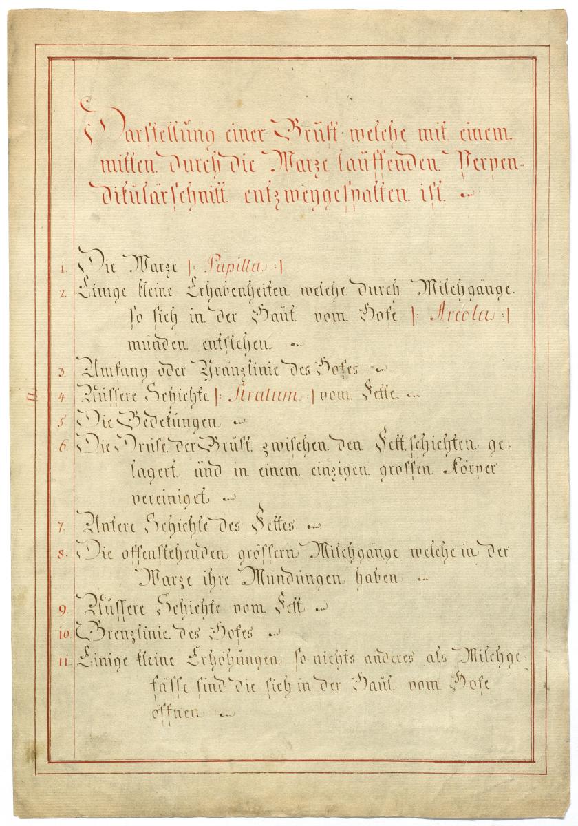 Der Text ist die ergänzende Beschreibung in deutscher Sprache zum anatomischen Wachsmodell der Brustdrüse.