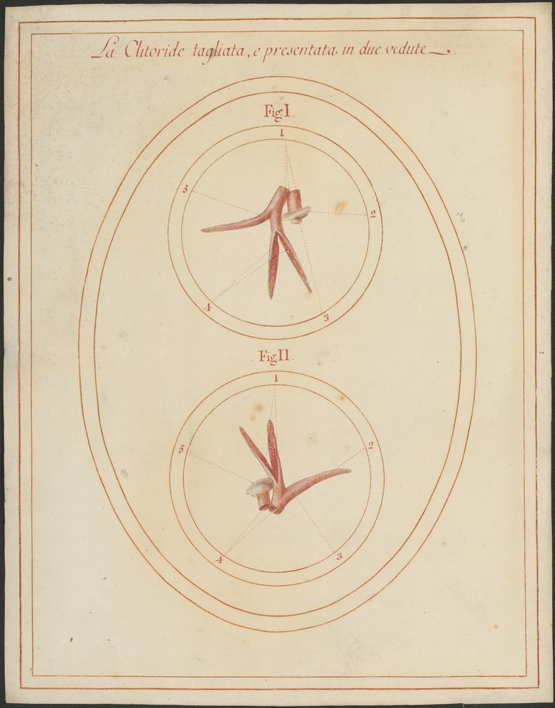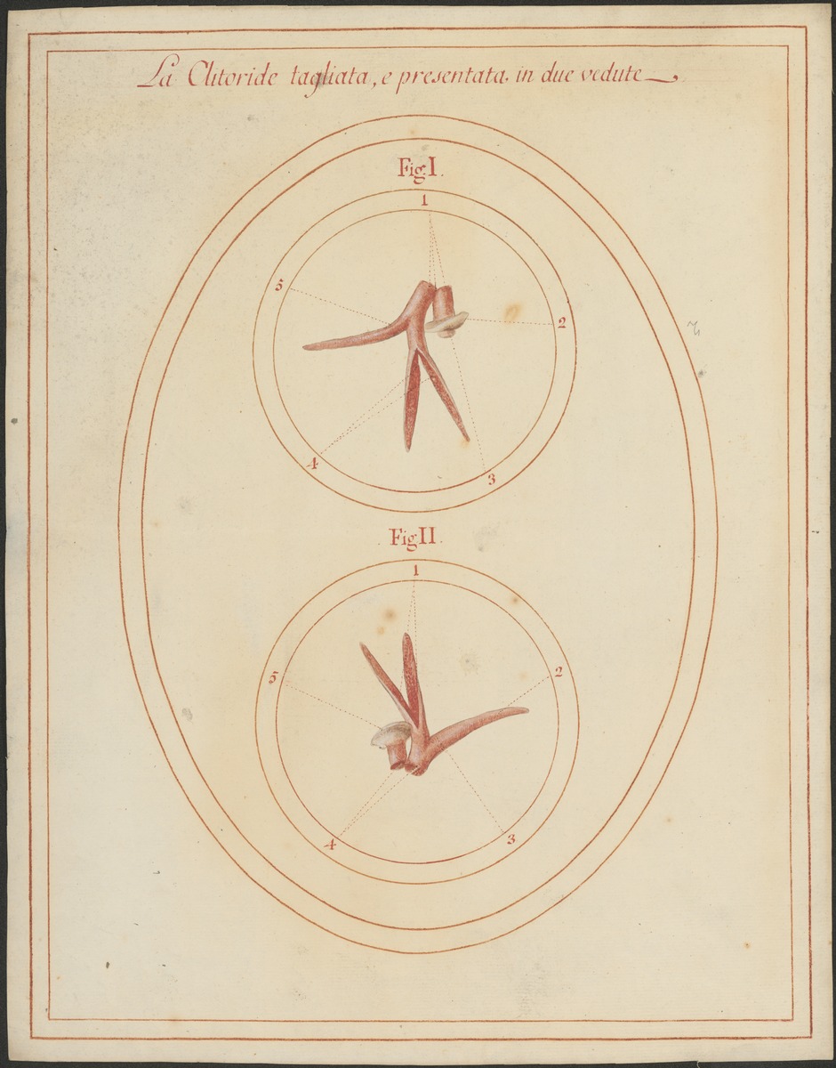 Fig. 1: 235/2: Schnitt durch die Klitoris (Clitoris) und deren Schwellkörper (Corpus cavernosum clitoridis). Fig. 2: 235/3: Schnitt durch die Klitoris (Clitoris) und deren Schwellkörper (Corpus cavernosum clitoridis).