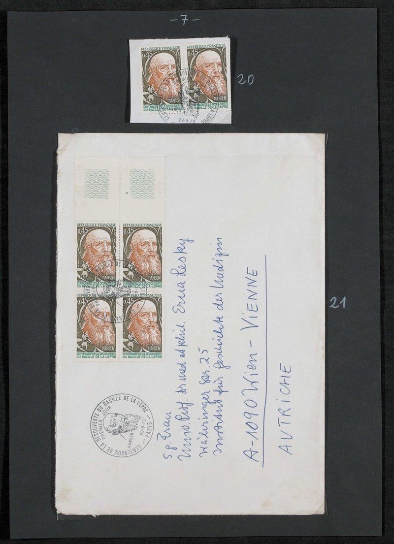 Der Briefumschlag ist an Erna Lesky adressiert.