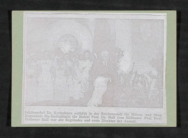 Abbildung in einer unbekannten Zeitung der von Josef Heu erschaffenen Gedenktafel.