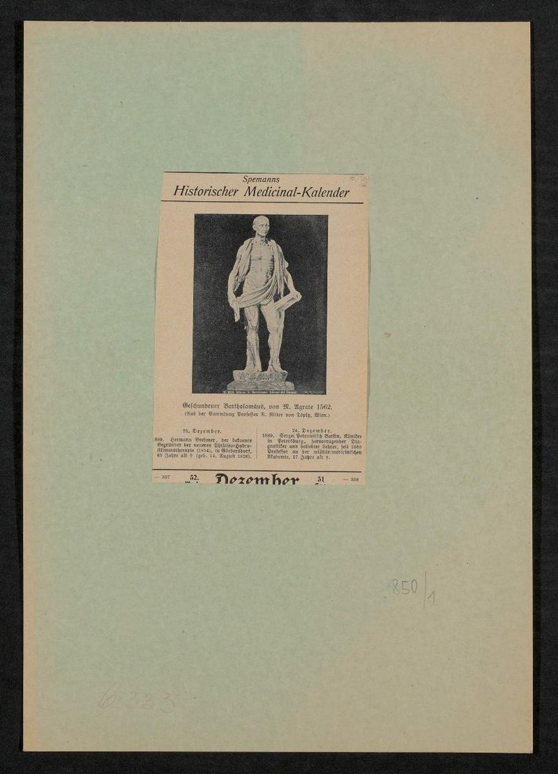 Auszug aus: Spemanns Historischer Medicinal-Kalender. Die Vorlage stammte aus der Sammlung Robert von Töply, Wien.
