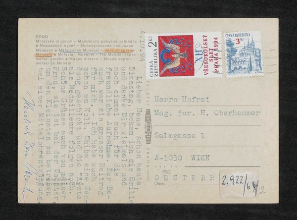 Fotografie von Milos Budlik. Die Ansichtskarte ist an Hans Oberhammer adressiert.