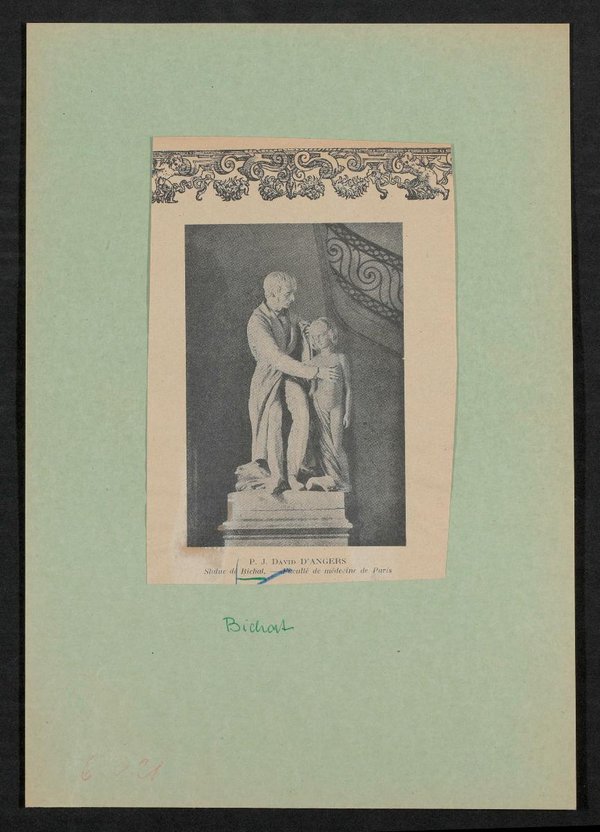 Ausschnitt aus: La Vie Medicale. Die Statue wurde von Pierre Jean David d'Angers angefertigt.