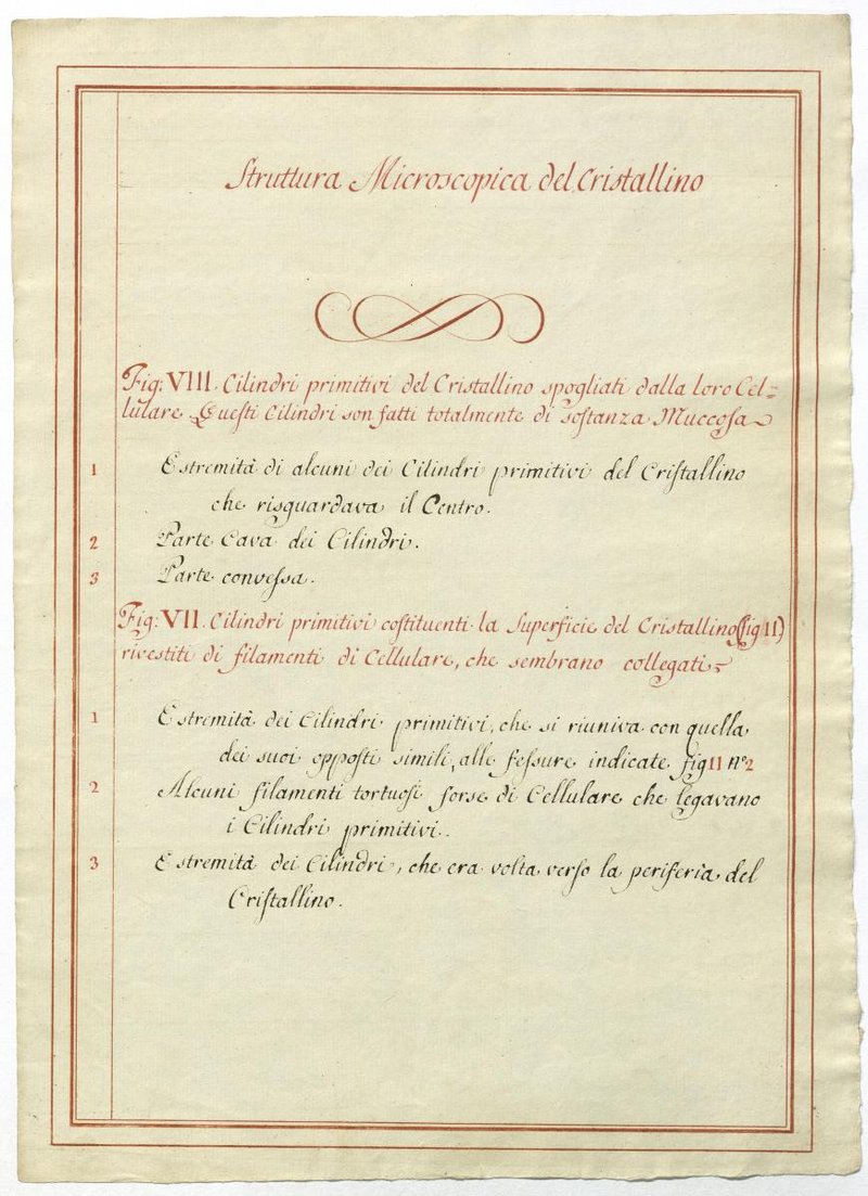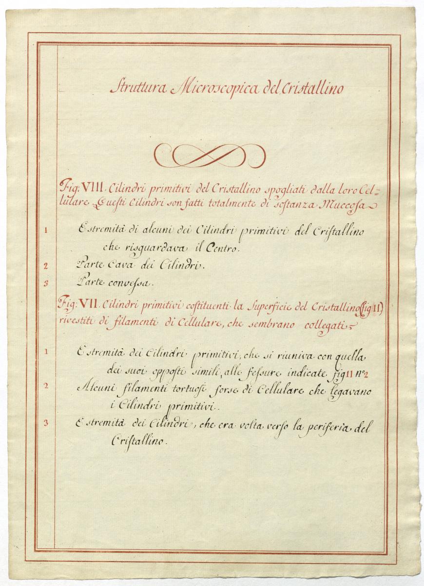 Der Text ist die ergänzende Beschreibung in italienischer Sprache zum anatomischen Wachsmodell unterschiedlicher Gewebe.