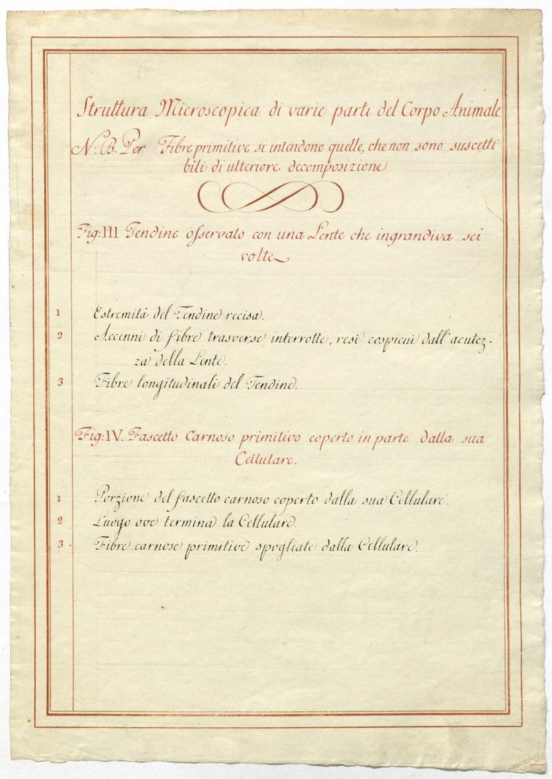 Der Text ist die ergänzende Beschreibung in italienischer Sprache zum anatomischen Wachsmodell der Sehnen und Muskeln.