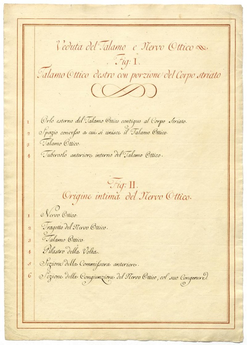 Der Text ist die ergänzende Beschreibung in italienischer Sprache zum anatomischen Wachsmodell des Hirnstammes.