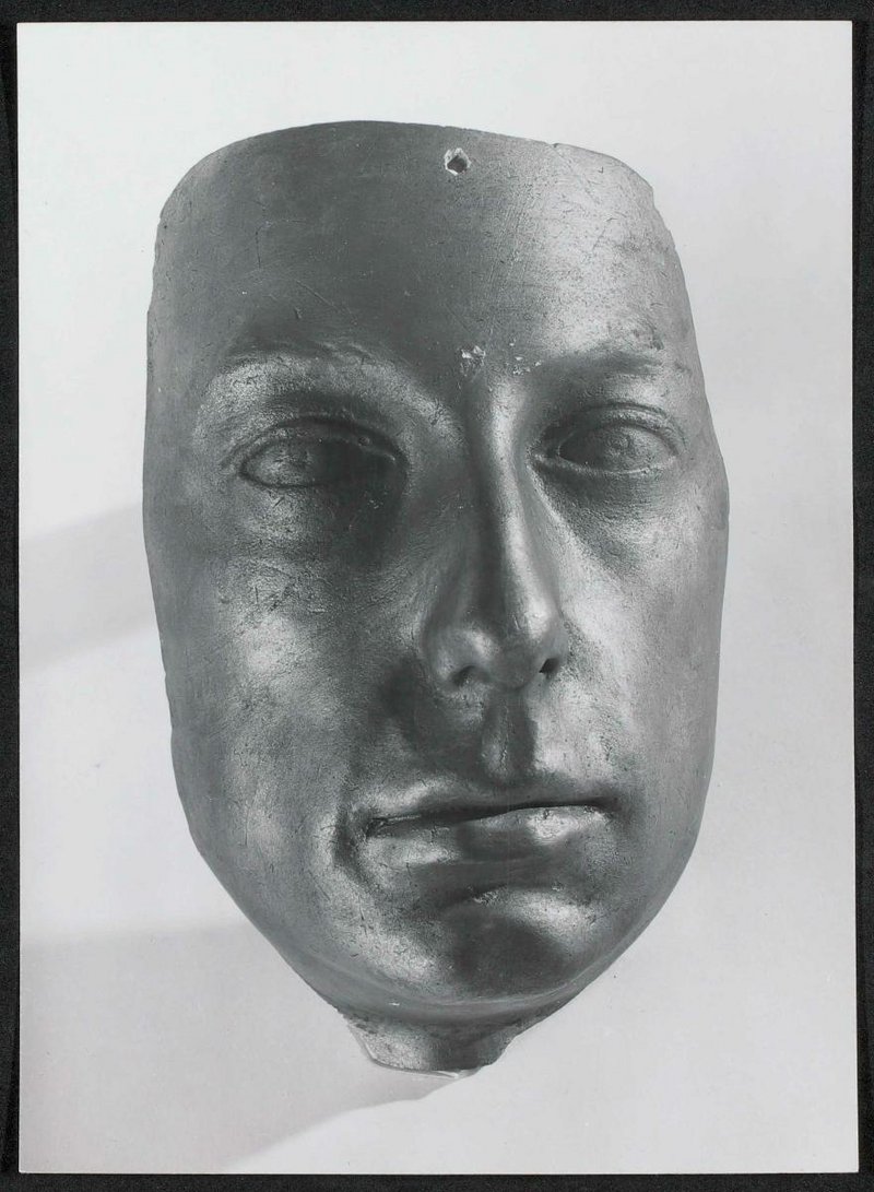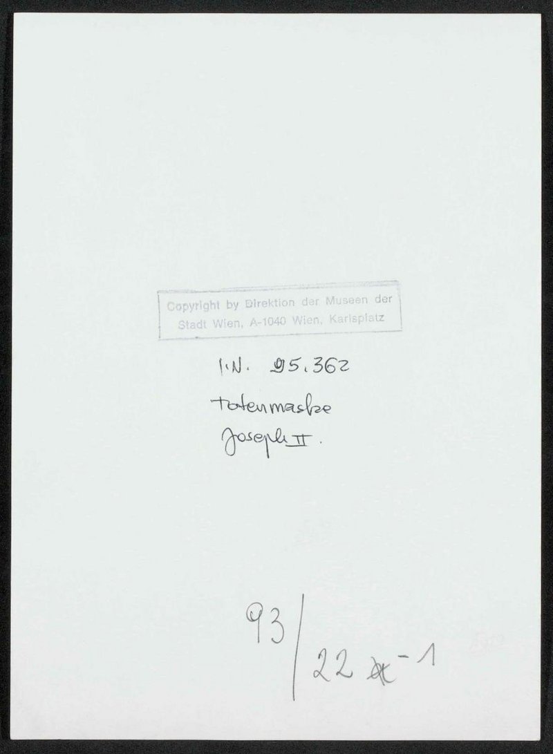 Fotografie des Wien Museums. Die Totenmaske war zum Zeitpunkt der Entstehung der Fotografie unter der Nr. 95362 inventarisiert.