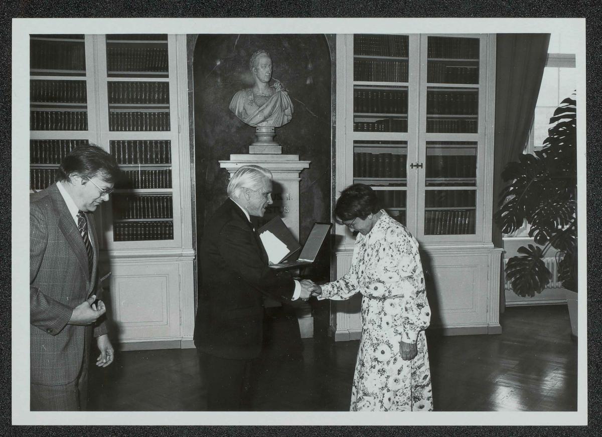 Aus einer Serie von 15 Fotografien, die die Überreichung der Sudhoff-Plakette und die anschließenden Feierlichkeiten am 24. Mai 1976 dokumentieren. Fotografie: Robert Nedorost. Neg. I 322/1-23