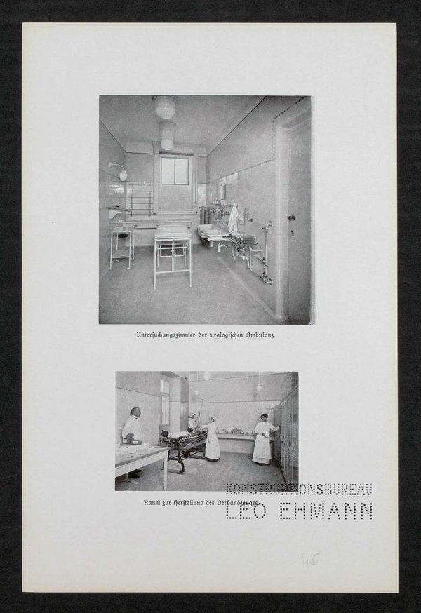 Die Fotografien wurden von Martin Peter Gerlach senior angefertigt. Das Konstruktionsbüro Leo Ehmann hat die gesamte medizinische Einrichtung des Spitals geplant und hergestellt.