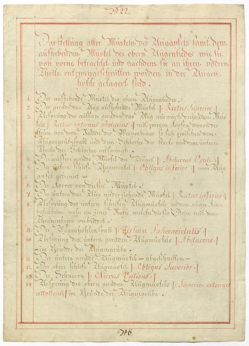 Der Text ist die ergänzende Beschreibung in deutscher Sprache zum anatomischen Wachsmodell der Augenmuskeln.