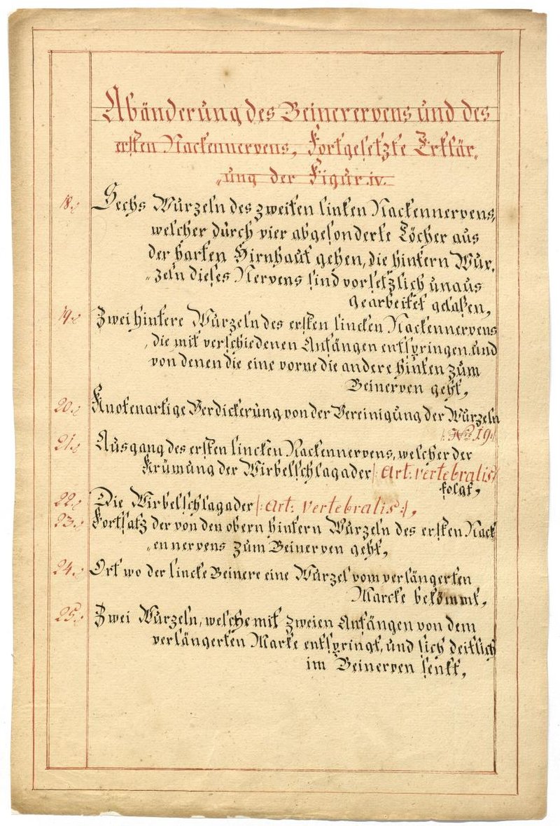 Der Text ist die ergänzende Beschreibung in deutscher Sprache zum anatomischen Wachsmodell des Nervus accessorius.