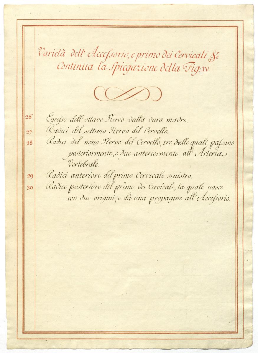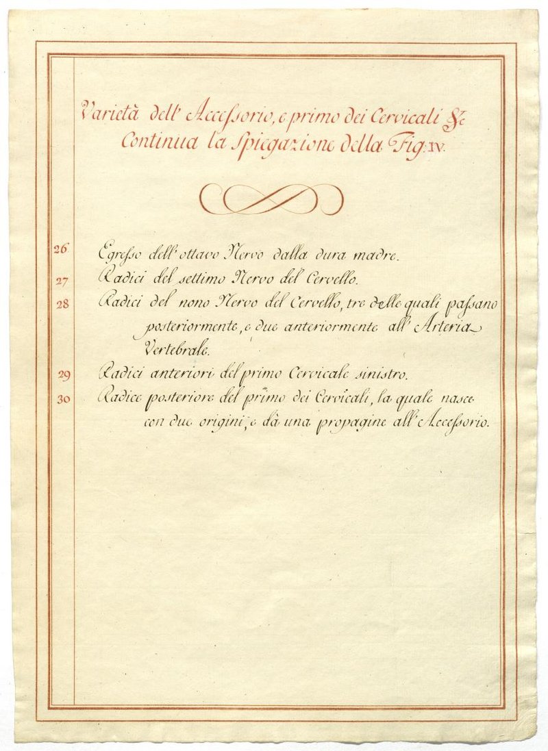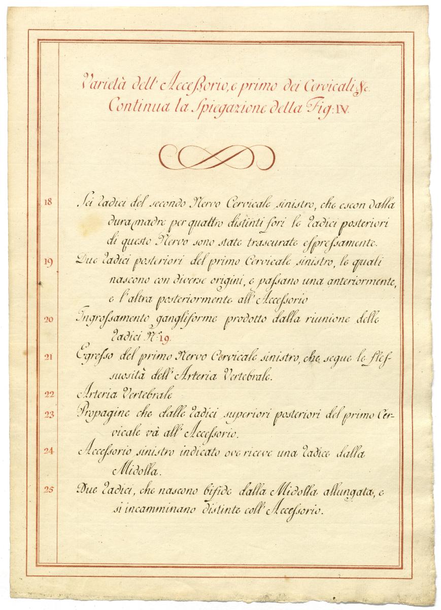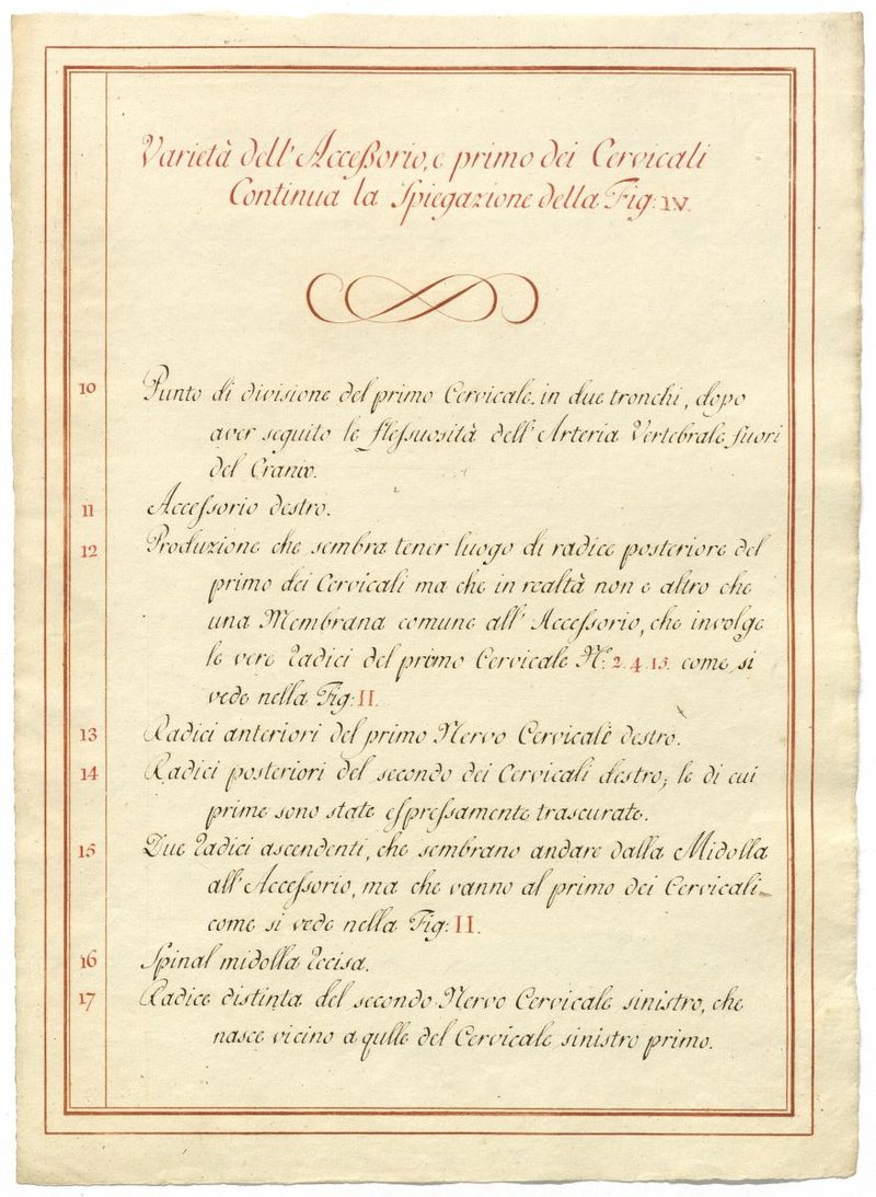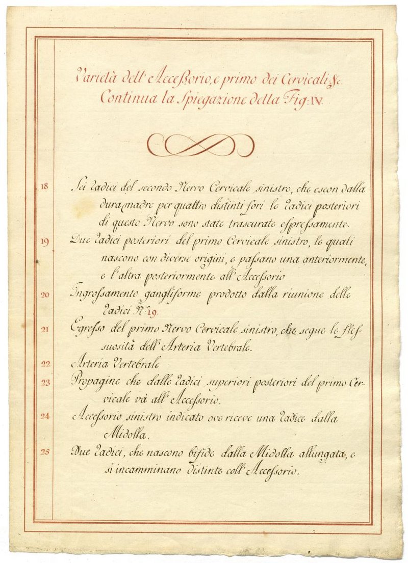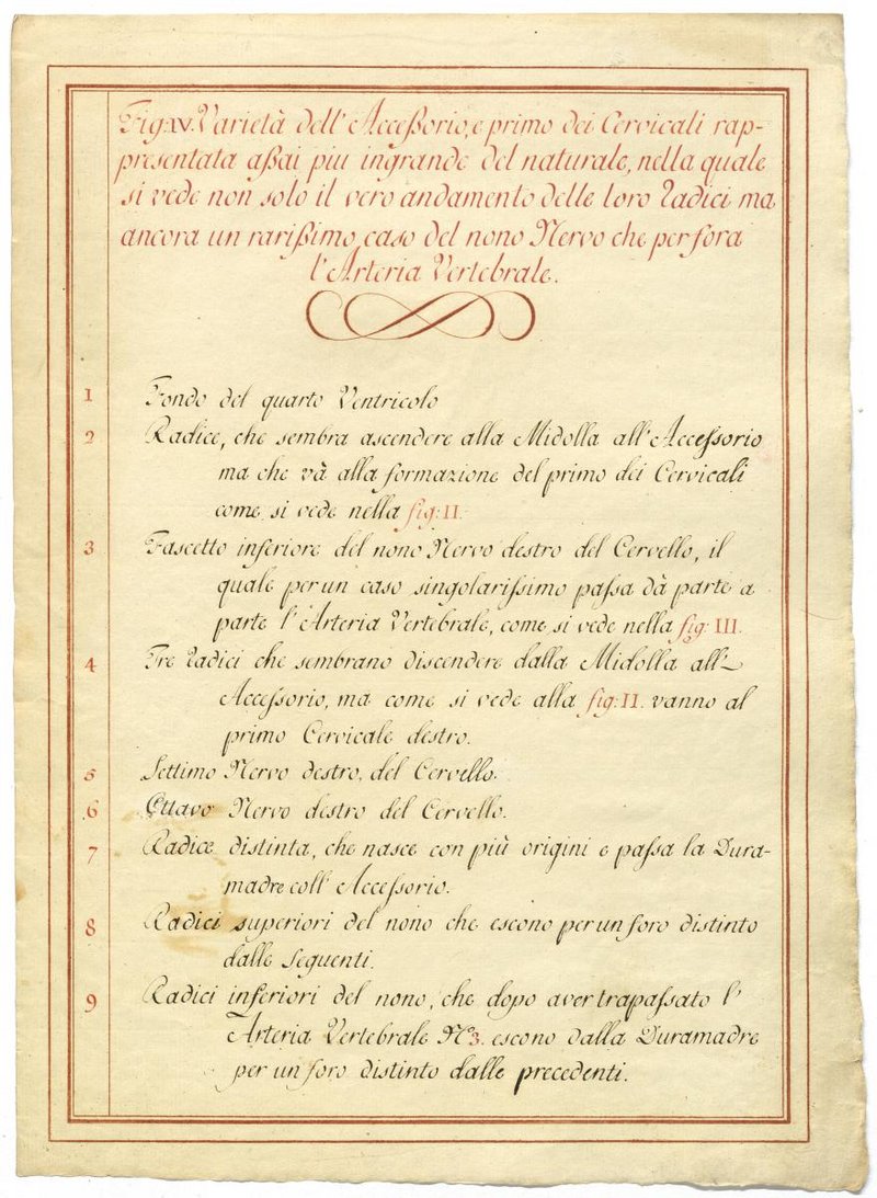 Der Text ist die ergänzende Beschreibung in italienischer Sprache zum anatomischen Wachsmodell des Nervus accessorius.