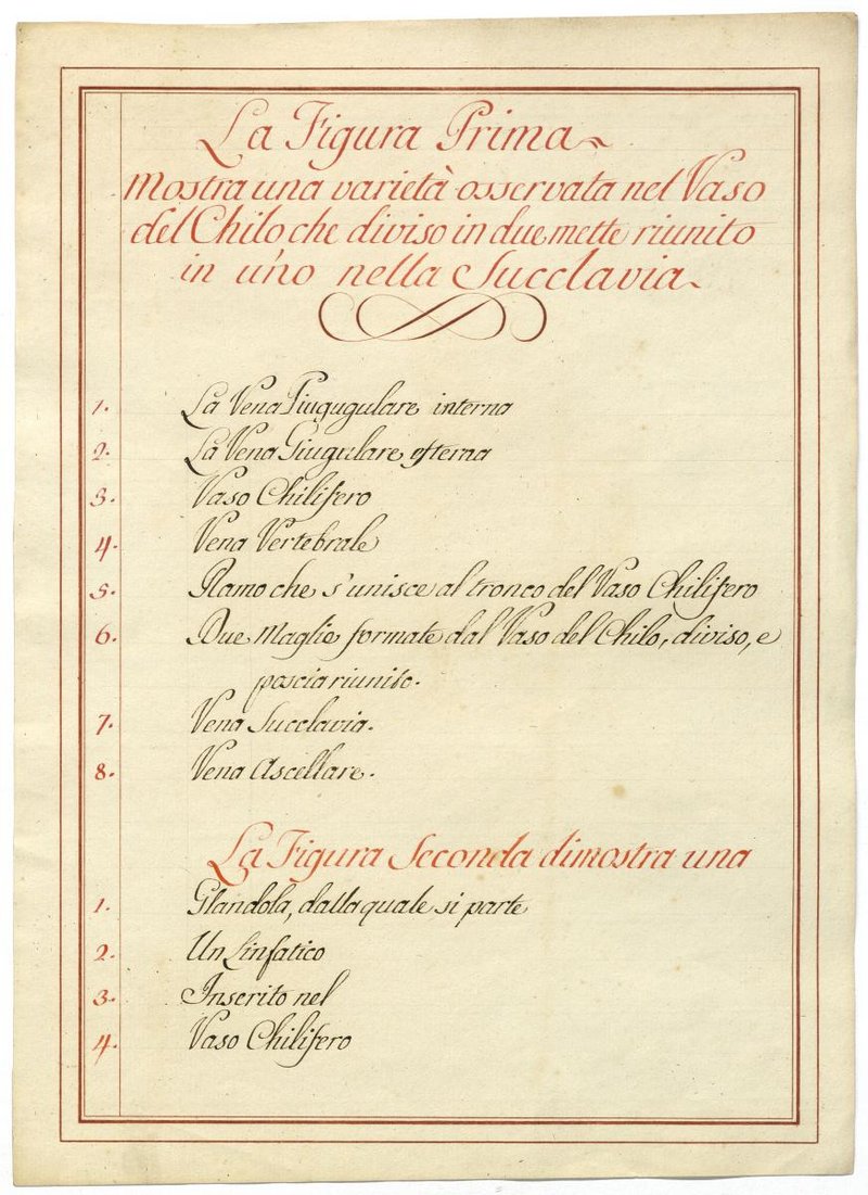 Der Text ist die ergänzende Beschreibung in italienischer Sprache zum anatomischen Wachsmodell des Milchbrustganges.
