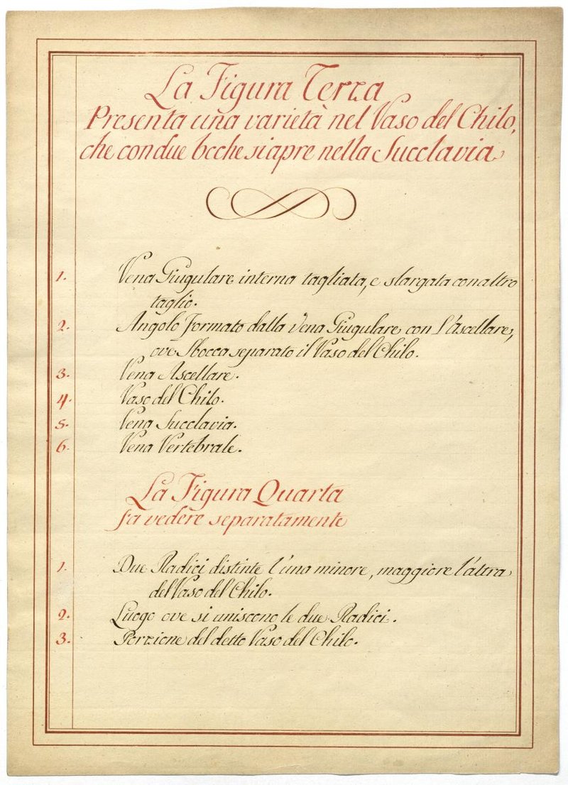 Der Text ist die ergänzende Beschreibung in italienischer Sprache zum anatomischen Wachsmodell des Milchbrustganges.