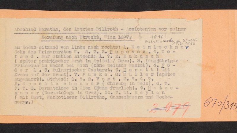 Reproduktion einer Fotografie aus dem Jahr 1896. Vorderseitig mit einem Stempel des Instituts für Geschichte der Medizin, Wien, versehen.