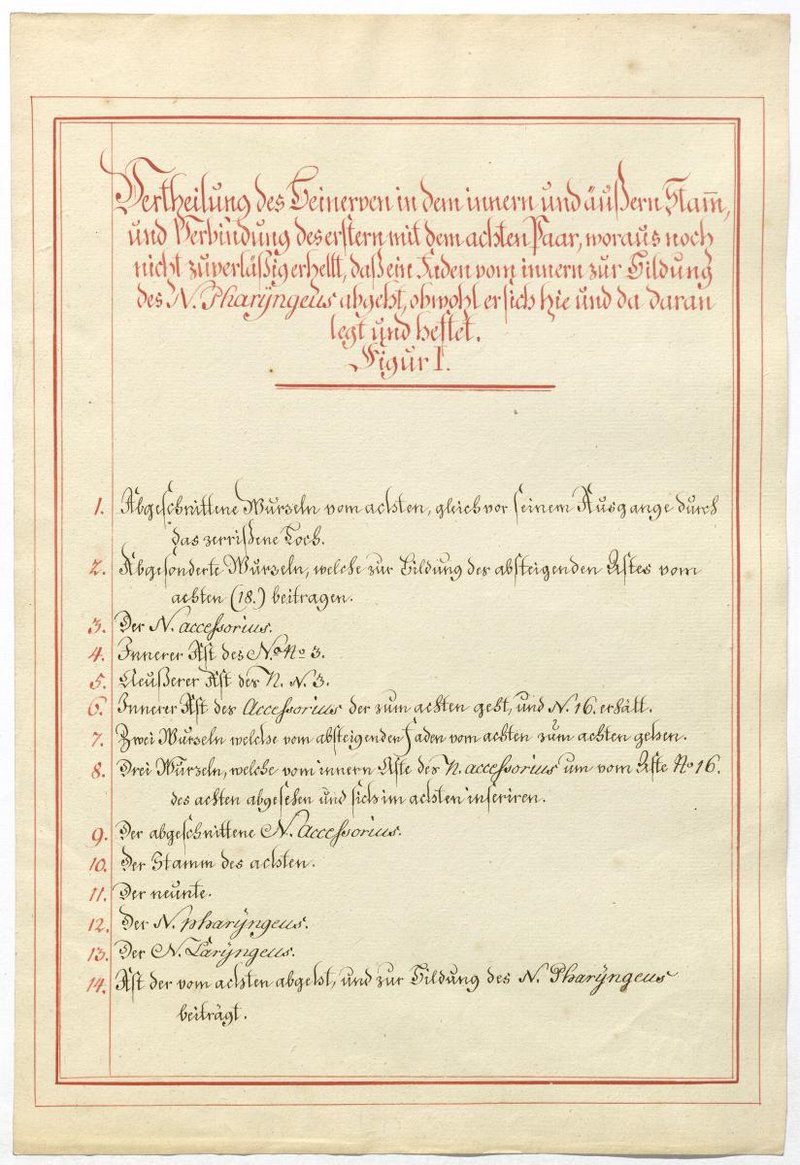 Der Text ist die ergänzende Beschreibung in deutscher Sprache zum anatomischen Wachsmodell des Nervus accessorius.