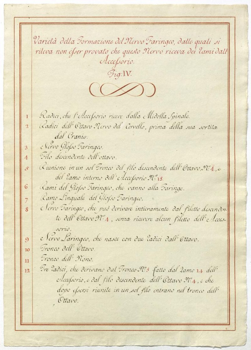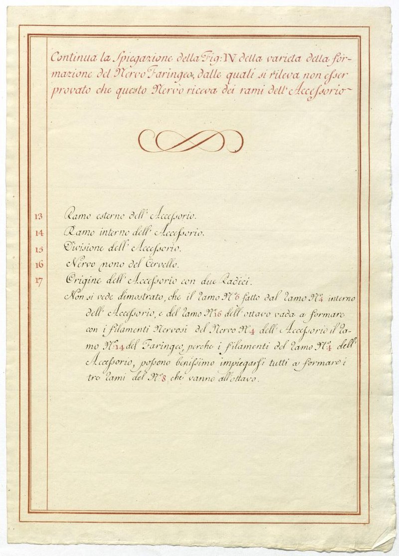 Der Text ist die ergänzende Beschreibung in italienischer Sprache zum anatomischen Wachsmodell des Nervus accessorius.