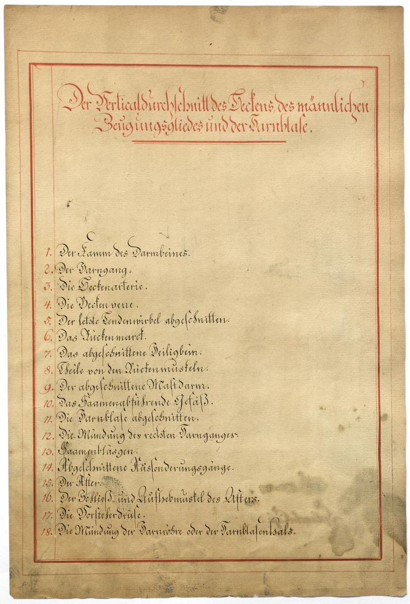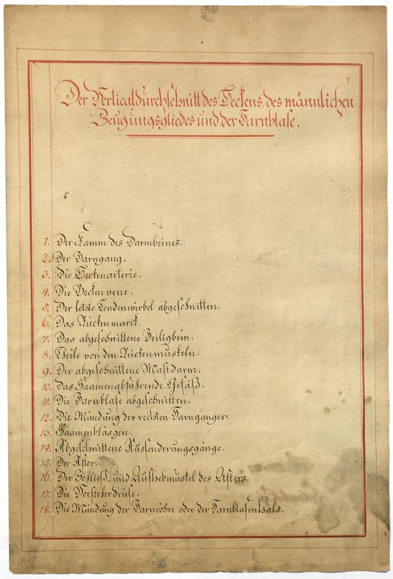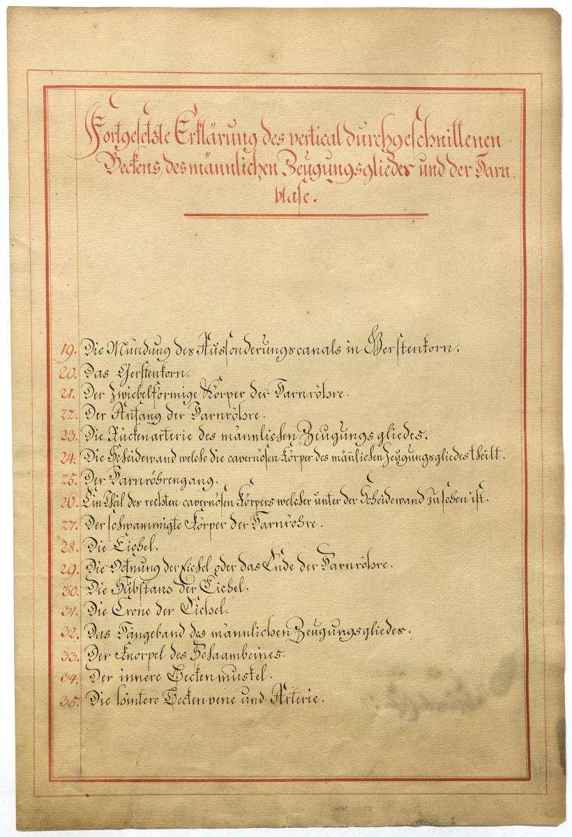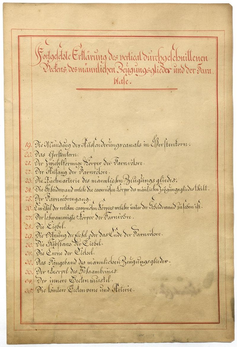 Der Text ist die ergänzende Beschreibung in deutscher Sprache zum anatomischen Wachsmodell des männlichen Genitale.