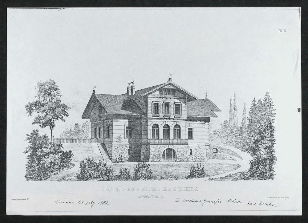 Kopie einer Lithografie von Rudolf Schürer von Waldheim, aus der Allgemeinen Bauzeitung aus dem Jahr 1874. Das Original ging 1992 an Jennifer Hebra.