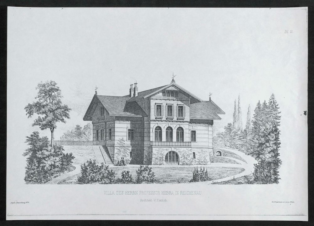Kopie einer Lithografie von Rudolf Schürer von Waldheim, aus der Allgemeinen Bauzeitung aus dem Jahr 1874. Das Original ging 1992 an Jennifer Hebra.