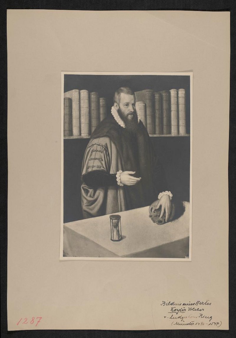 Reproduktion eines Ölgemäldes unbekannter Urheber:innenschaft, das zum Zeitpunkt der Entstehung des Ausschnitts im Besitz der Nürnberger Stadtbibliothek war. Der Ausschnitt ist der Ciba-Zeitschrift entnommen worden.