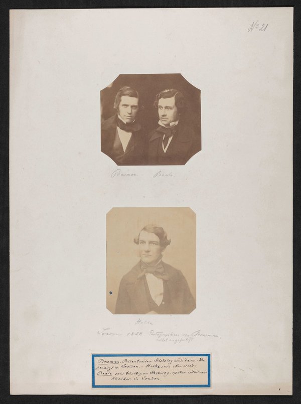 Die Fotografien wurden von William Paget Bowman angefertigt. Auf der Rückseite mit einem Vermerk zur Leihgabe durch die Gesellschaft der Ärzte, Wien, versehen.