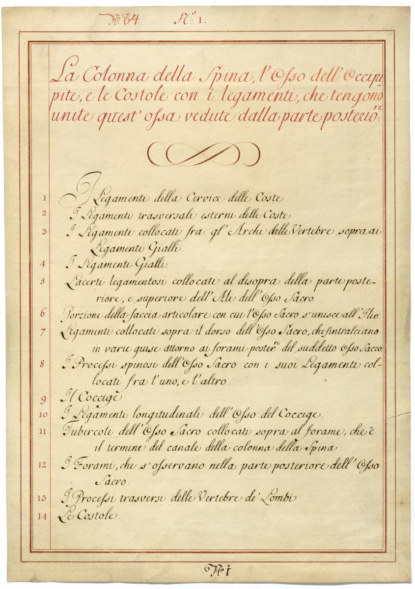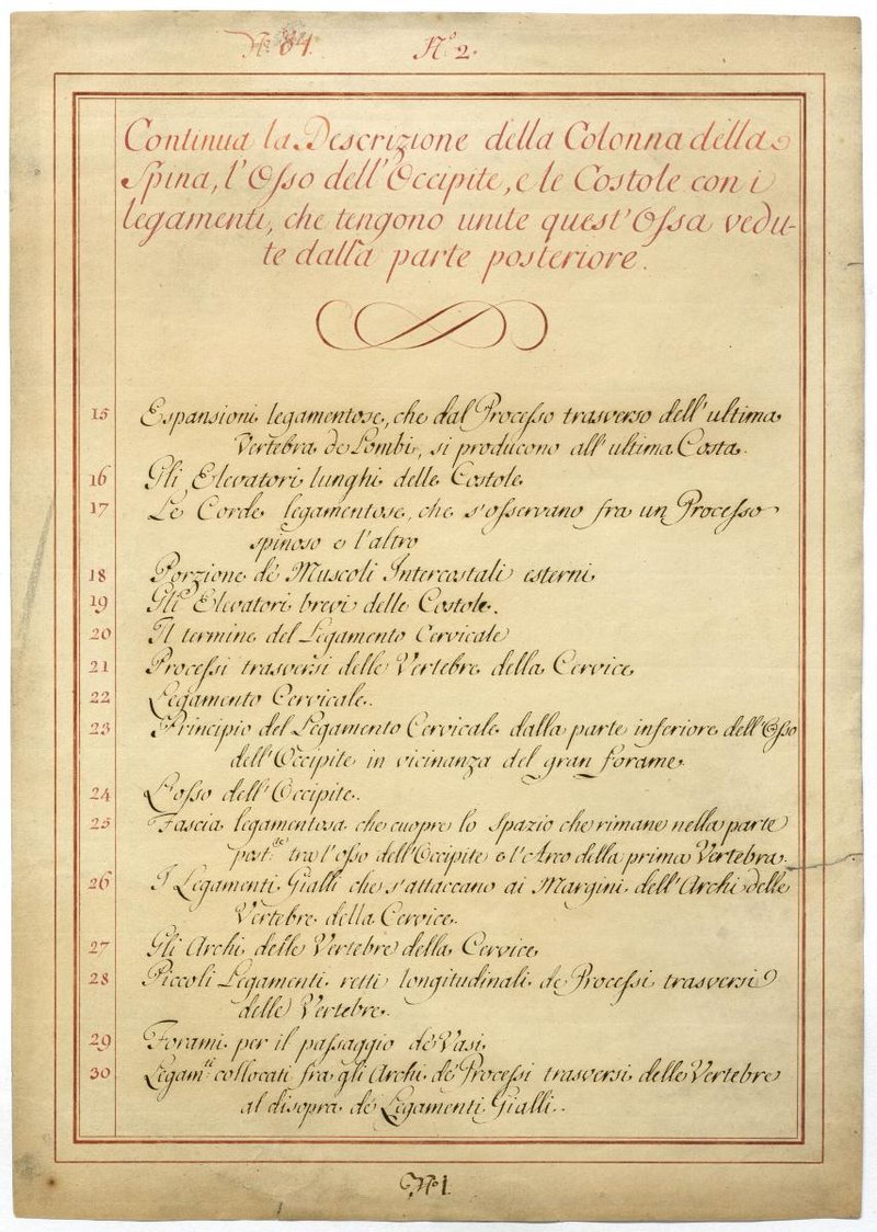 Der Text ist die ergänzende Beschreibung in italienischer Sprache zum anatomischen Wachsmodell der Zwischenrippenmuskulatur.