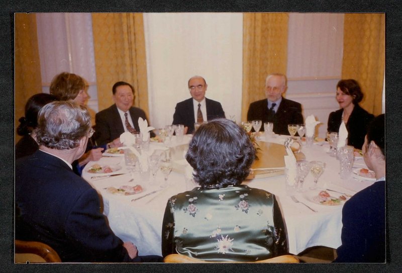 Abgebildet sind: Botschafter Wang Yanyi, Prof. Wu, Peking, Prof. Reuter, Deutschland, Karl Holubar, Wien, und teilweise die Ehefrauen der Abgebildeten.