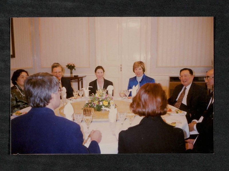 Abgebildet sind: Botschafter Wang Yanyi, Prof. Wu, Peking, Prof. Reuter, Deutschland, Karl Holubar, Wien, und teilweise die Ehefrauen der Abgebildeten.