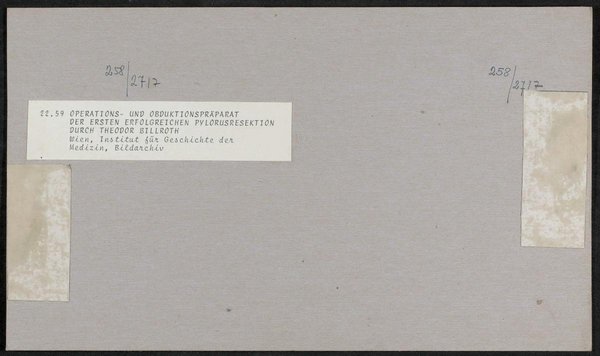 Mit Erläuterungen auf der Rückseite. Die Präparate wurden im Pathologisch-anatomischen Museum Wien, dem heutigen Narrenturm, aufbewahrt. Neg II 119 Neg I 32/8